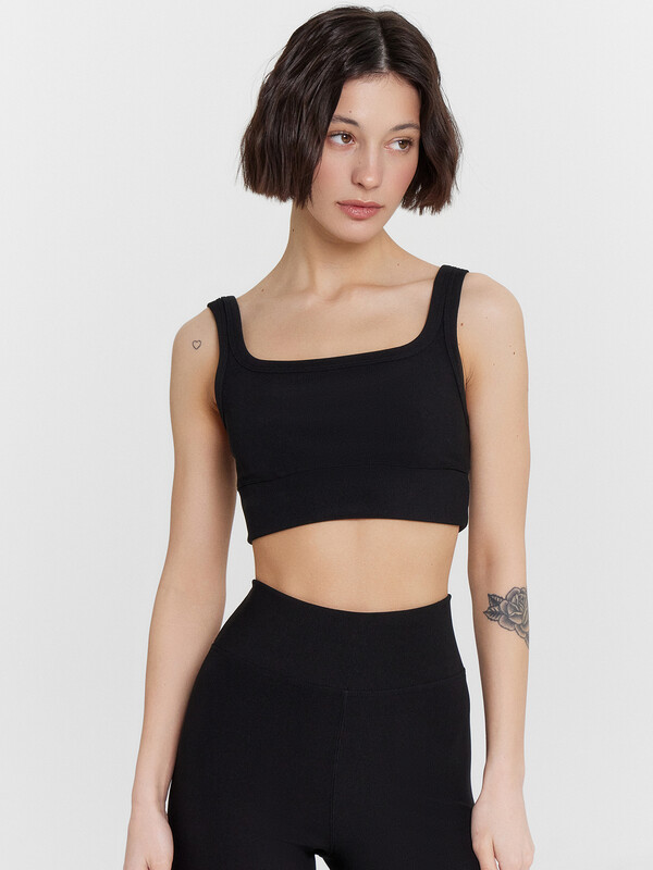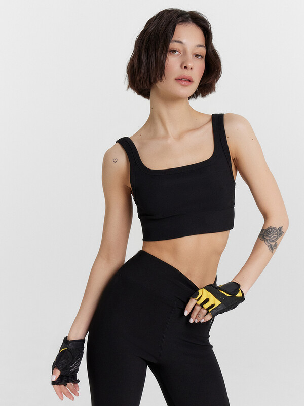 Топ облегающего силуэта, укороченный. Горловина формы каре.