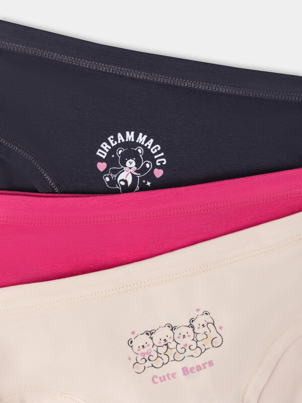 Набор трусов для девочек — это базовые модели слипы из мягкого хлопка с эластаном для повседневной носки. В набор входят три пары: бежевого, розового и серого цветов.