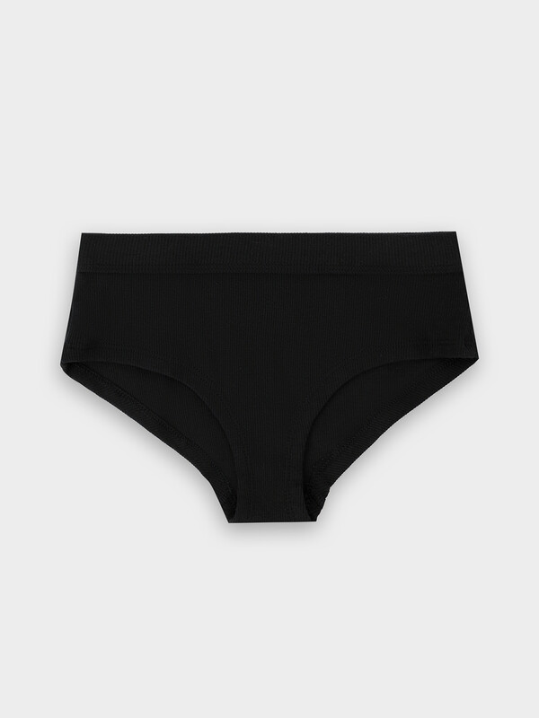 Нижние срезы трусов обработан швом вподгибку.