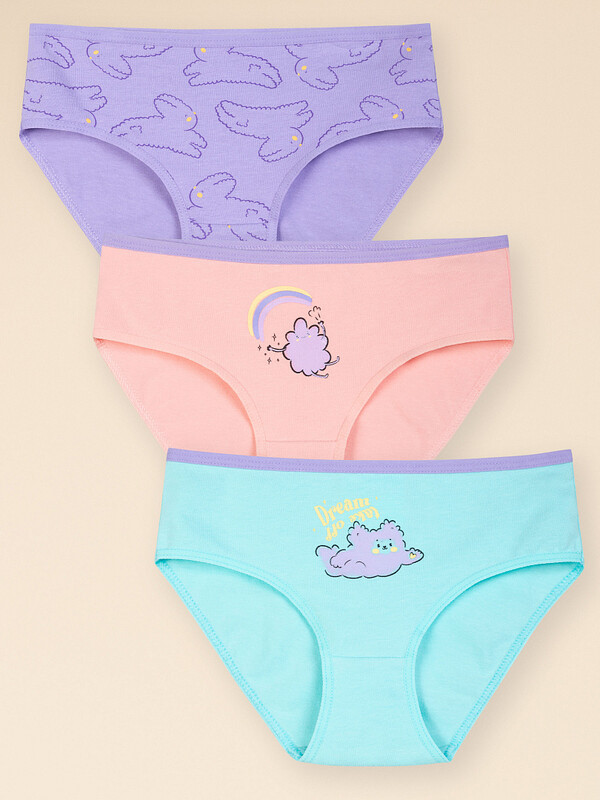 При выборе белья для своего ребёнка каждая мама хочет быть уверена в его качестве и в том, что ребёнку будет комфортно. Комплект (3 шт.) трусов для девочки полностью соответствует этим требованиям. Слипы средней посадки выполнены из ткани с высоким содержанием хлопка — модель мягкая, прекрасно пропускает воздух, давая коже ребёнка дышать. Благодаря эластану в составе изделие надолго сохраняет отличную форму, даже после многочисленных стирок. Качественная ткань и анатомически правильный крой обеспечивают идеальную посадку на теле — ребёнку комфортно на протяжении всего дня. Мягкая резинка исключает раздражение и трение. Модель представлена в трёх актуальных оттенках: лиловый, "персиковый бисквит" и "голубой топаз". Нежные и по-настоящему красивые цвета сиреневый, персиковый и голубой, напоминают пирожные "макарон" и обязательно придутся по душе любой девочке. Слипы украшены милыми позитивными принтами. Перевод: "Мечтай Взлезай". Принты мягкие, эластичные и великолепно переносят частые стирки. Идеальный выбор д