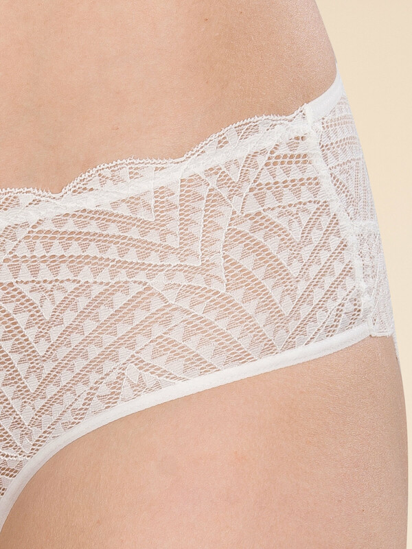 Женские кружевные трусы-шорты со средней посадкой для влюбленных в красивый образ жизни. Эластичная и мягкая ткань позволяет избежать натираний и неудобств, кожа дышит. Кружево с фестонным краем подчеркивает изящные линии тела и придает модели романтичные нотки. Нежный кружевной узор придает женственности и изысканности. Вы можете создавать разные образы по настроению - от повседневных и классических, до соблазнительных.