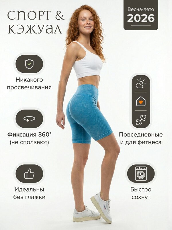 Модель подходит для спорта, фитнеса, йоги и повседневной носки. Легко сочетается с топами, футболками и спортивными комплектами.