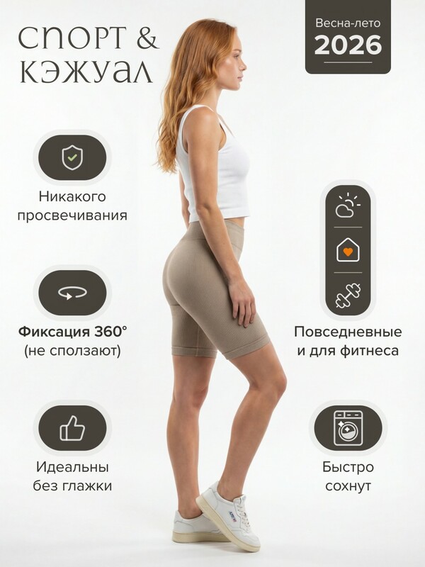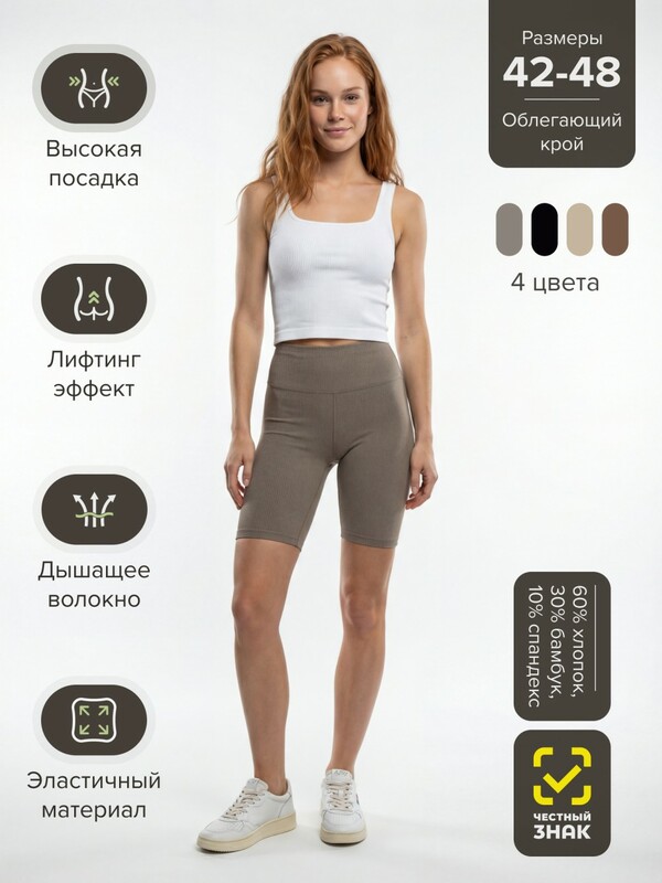 Модель подходит для фитнеса, йоги, тренировок и повседневных образов. Легко сочетается с топами, футболками и спортивными комплектами.