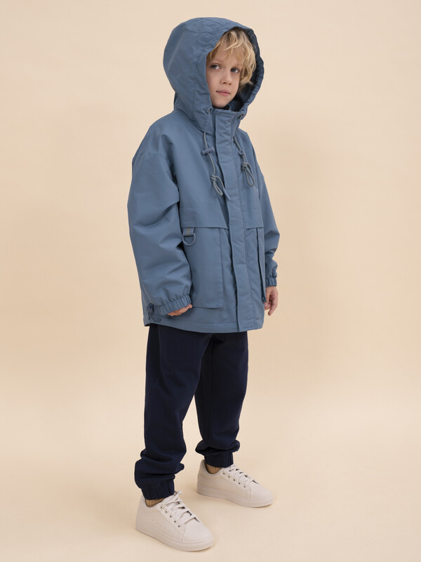 Куртка детская - ветровка для мальчика на молнии с планкой. Объем капюшона и ветровки регулируются шнуром. Два объемных кармана для важных мелочей. Манжеты рукавов собраны на широкую резинку. Светоотражающие элементы на спине и на карманах. Единый дизайн name label’s - ребенок не потеряется и легко отыщет свою одежду.