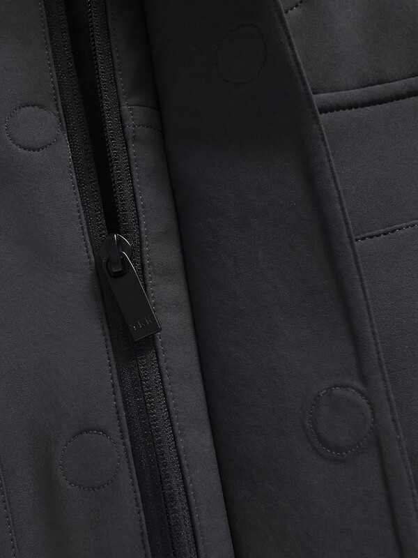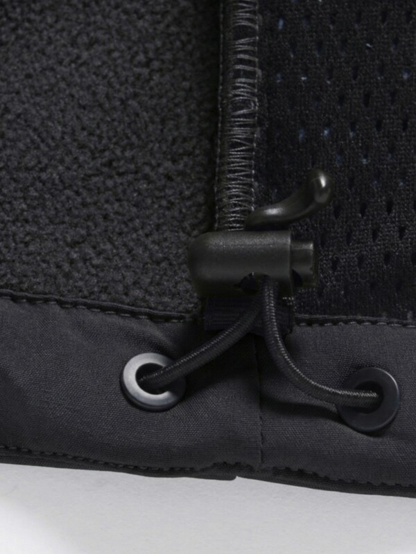 Верх выполнен из плотной технологичной ткани софтшелл с эффектом виндстоппера. Материал эффективно защищает от ветра, отталкивает влагу и при этом сохраняет хорошую воздухопроницаемость. Благодаря эластичности ткани куртка комфортно сидит по фигуре и не сковывает движения.