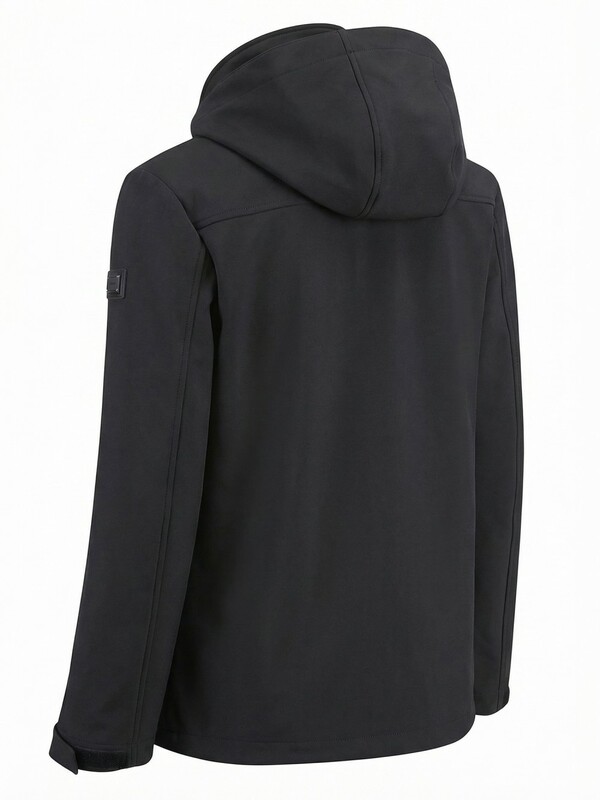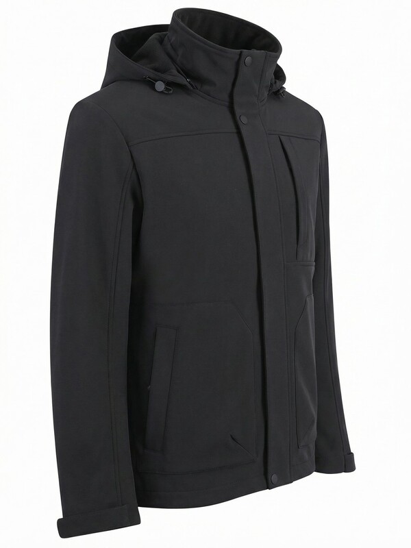 Главная страница - Каталог - Мужская одежда - Мужская верхняя одежда - Мужская верхняя одежда весна-осень - Ветровка мужская софтшелл виндстоппер с капюшоном спортивная черного цвета 9617_1Ch