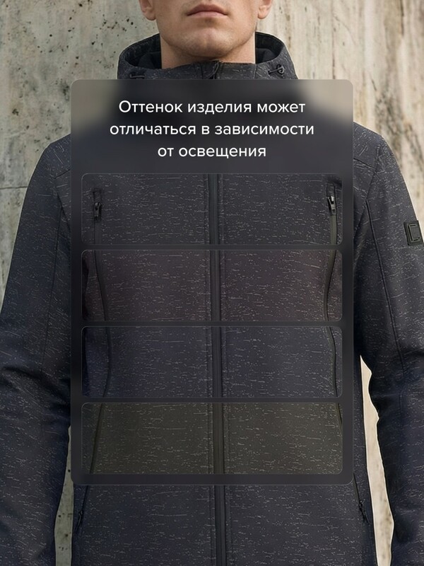 Куртка выглядит сдержанно днём и эффектно раскрывается вечером, сочетая стиль и функциональность.