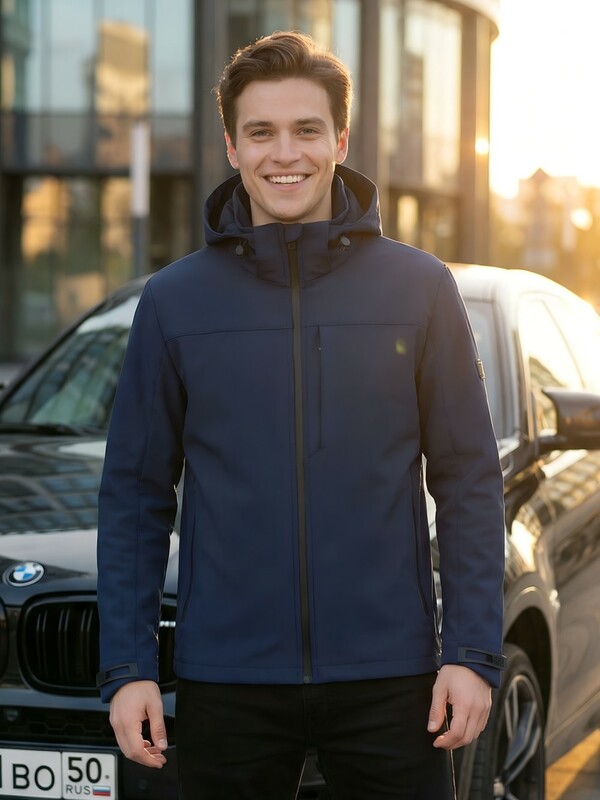 Верх выполнен из технологичной ткани софтшелл с эффектом виндстоппера. Материал плотный, эластичный и приятный на ощупь, надежно защищает от ветра и влаги, при этом сохраняет хорошую воздухопроницаемость. Внутренняя часть дополнена мягкой флисовой подкладкой, которая удерживает тепло и делает куртку особенно комфортной при ежедневной носке.