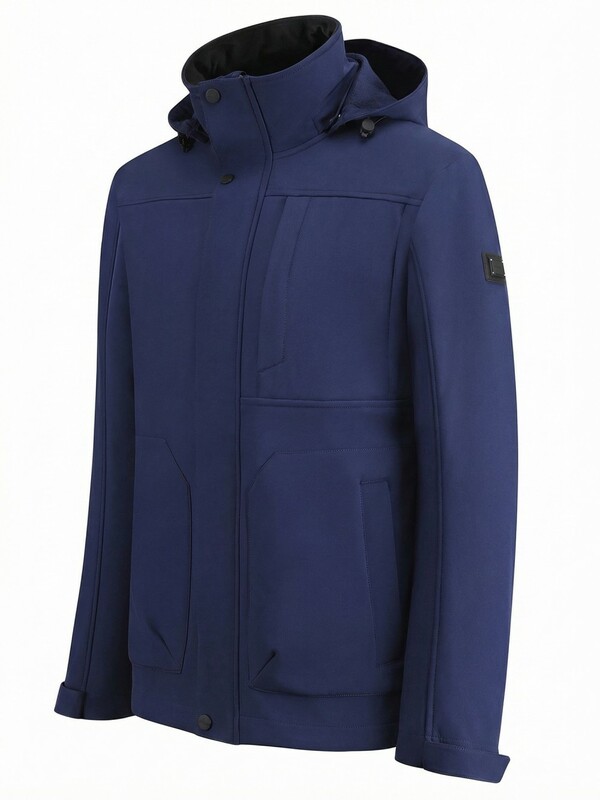 Главная страница - Каталог - Мужская одежда - Мужская верхняя одежда - Мужская верхняя одежда весна-осень - Ветровка мужская софтшелл виндстоппер с капюшоном спортивная темно-синего цвета 9617_1TS