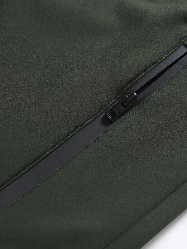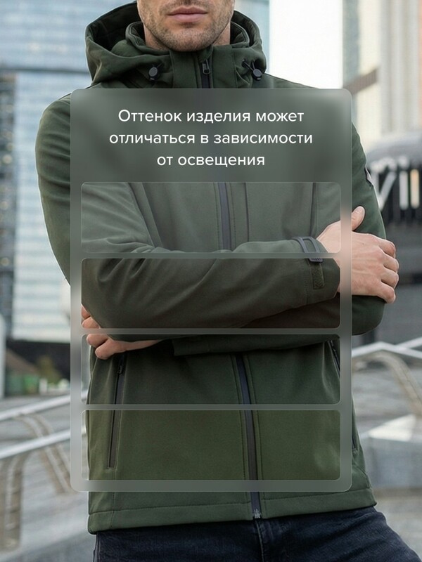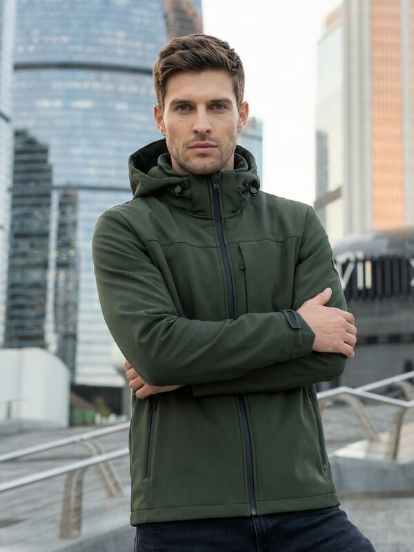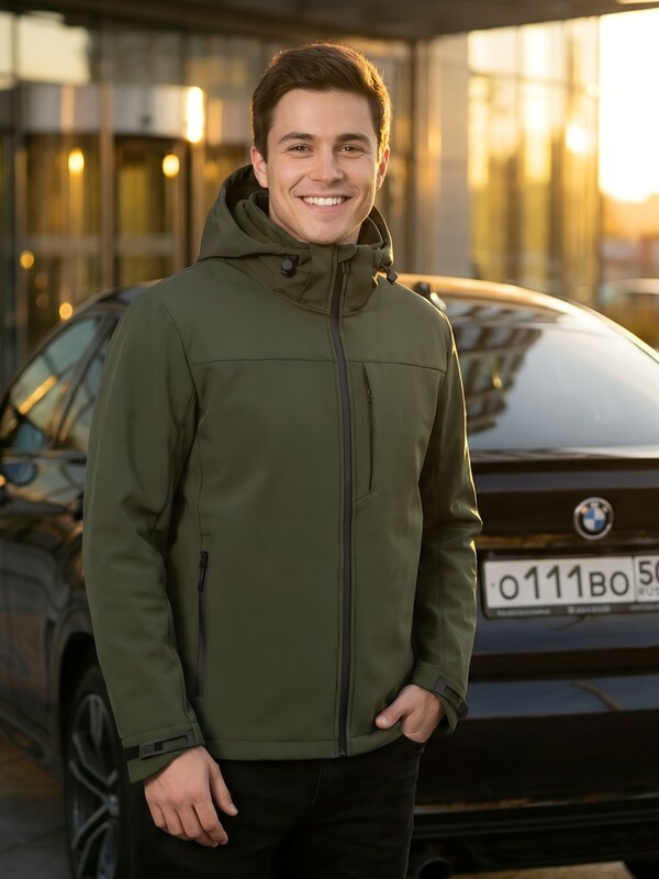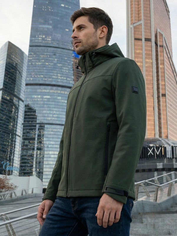 Верх выполнен из технологичной ткани софтшелл с эффектом виндстоппера. Материал плотный, эластичный и приятный на ощупь, надежно защищает от ветра и влаги, при этом сохраняет хорошую воздухопроницаемость. Внутренняя часть дополнена мягкой флисовой подкладкой, которая удерживает тепло и делает куртку особенно комфортной при ежедневной носке.