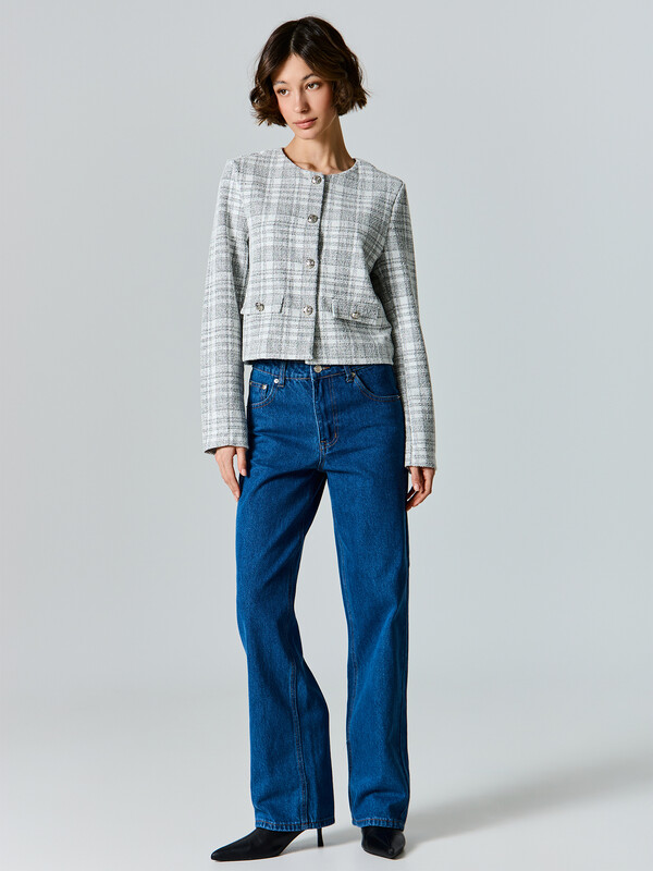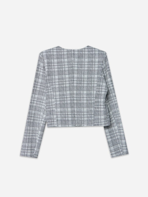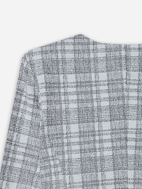 Этот укороченный женский жакет прямого силуэта станет стильным дополнением вашего гардероба. Горловина круглой формы и длинные рукава придают жакету элегантный вид. Застежка на петли и пуговицы обеспечивает удобство, а спереди располагаются клапаны с пуговицами, добавляя изделию изысканности. Для его выполнения использовали материал академик с добавлением люрекса, который придает характерный легкий блеск. Этот жакет идеально подойдет для создания стильных образов, добавляя в ваш наряд нотку изящества и шика.