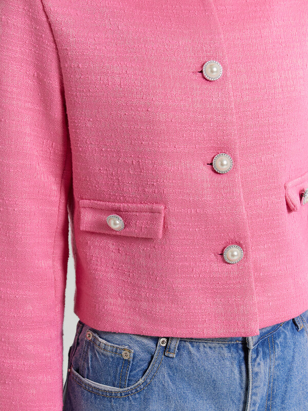 Этот укороченный женский жакет прямого силуэта станет стильным дополнением вашего гардероба. Горловина круглой формы и длинные рукава придают жакету элегантный вид. Застежка на петли и пуговицы обеспечивает удобство, а спереди располагаются клапаны с пуговицами, добавляя изделию изысканности. Для его выполнения использовали материал академик с добавлением люрекса, который придает характерный легкий блеск. Этот жакет идеально подойдет для создания стильных образов, добавляя в ваш наряд нотку изящества и шика.