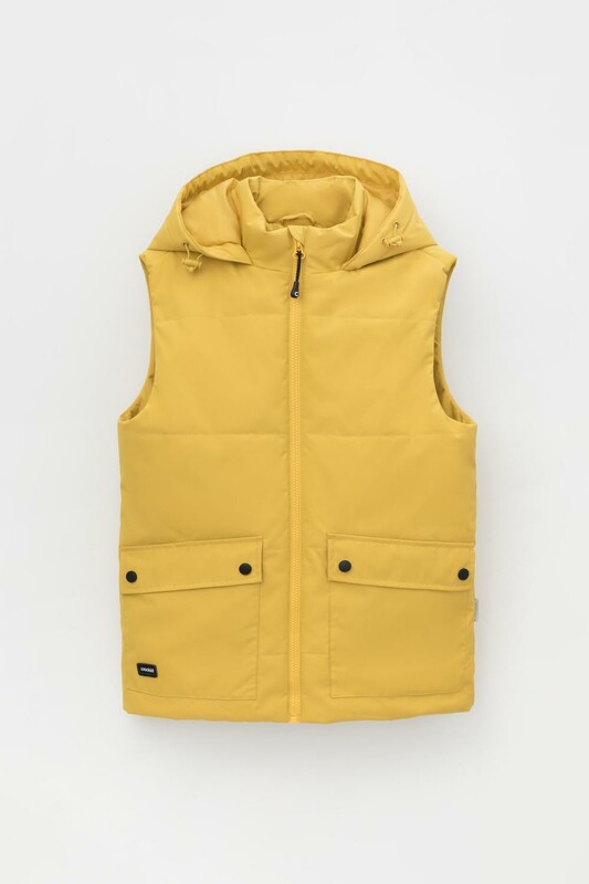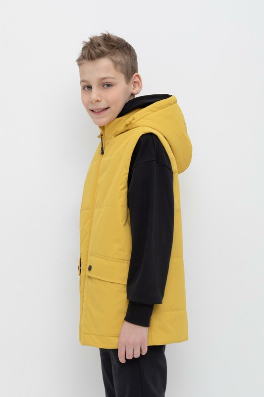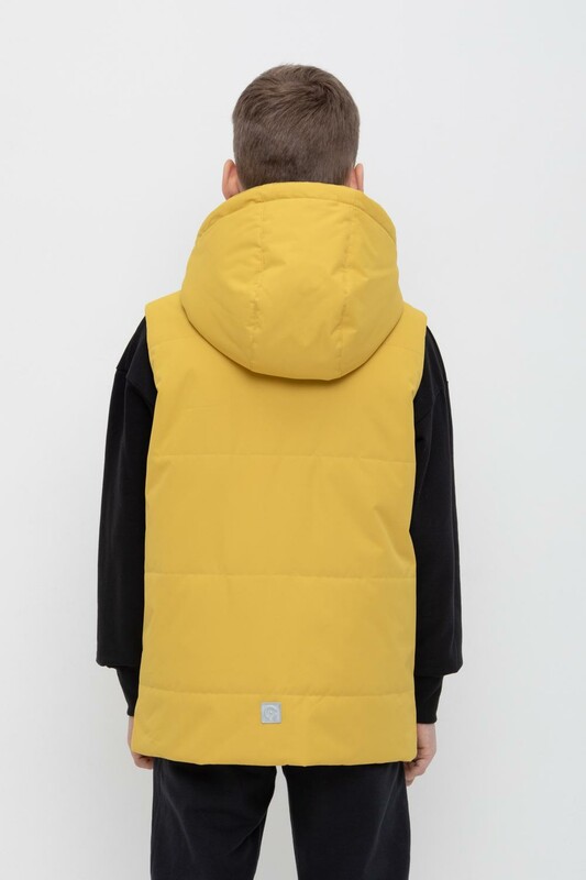 Стеганный жилет с капюшоном для мальчика с утеплителем Fellex®: 120 г/м2. Выполнен из мембранной ткани с дополнительной тефлоновой обработкой и матовым покрытием. Данный вид обработки предохраняет изделие от загрязнения и лучше отводит влагу. Подклад из 100% полиэстра. У изделия предусмотрена защита подбородка. Накладные карманы с клапанами на кнопках. Во всех изделиях верхнего ассортимента для безопасности ребенка предусмотрены светоотражающие элементы.