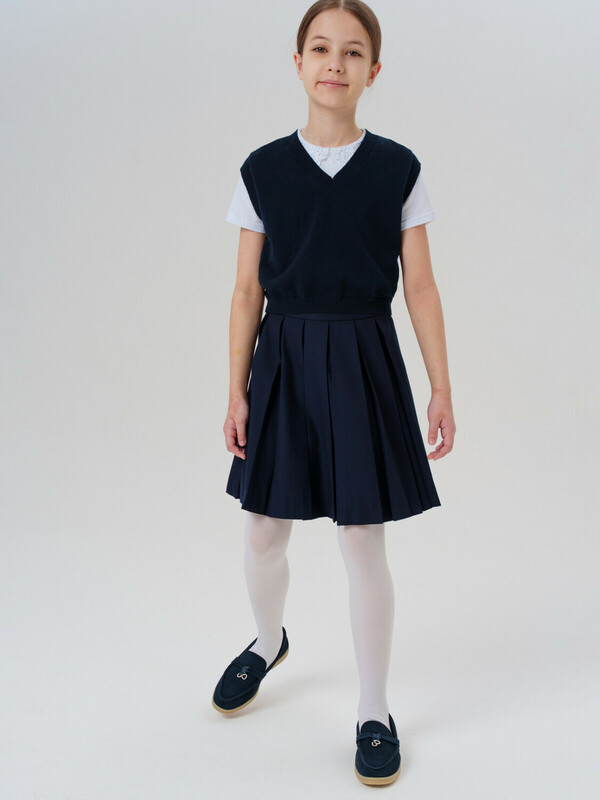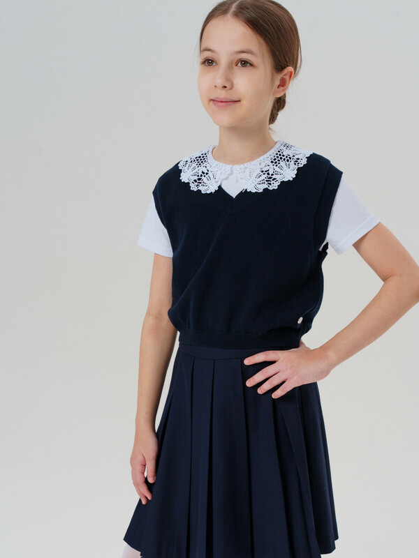 Этот модный жилет для школы станет универсальным элементом гардероба юной модницы. Модель выполнена в comfort силуэте – свободный крой обеспечивает комфорт в движении и современный внешний вид.