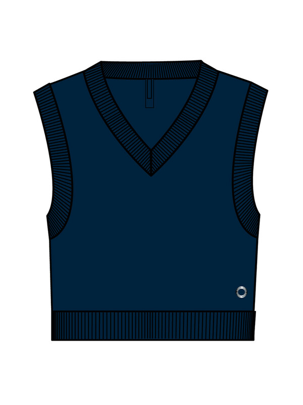 Стильный школьный укороченный темно-синий жилет для девочки подростка.