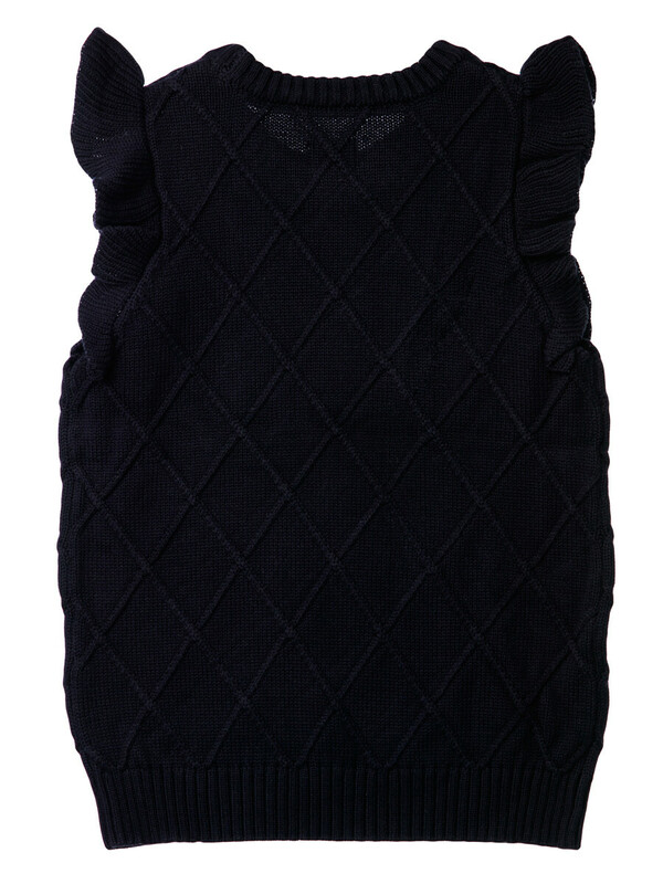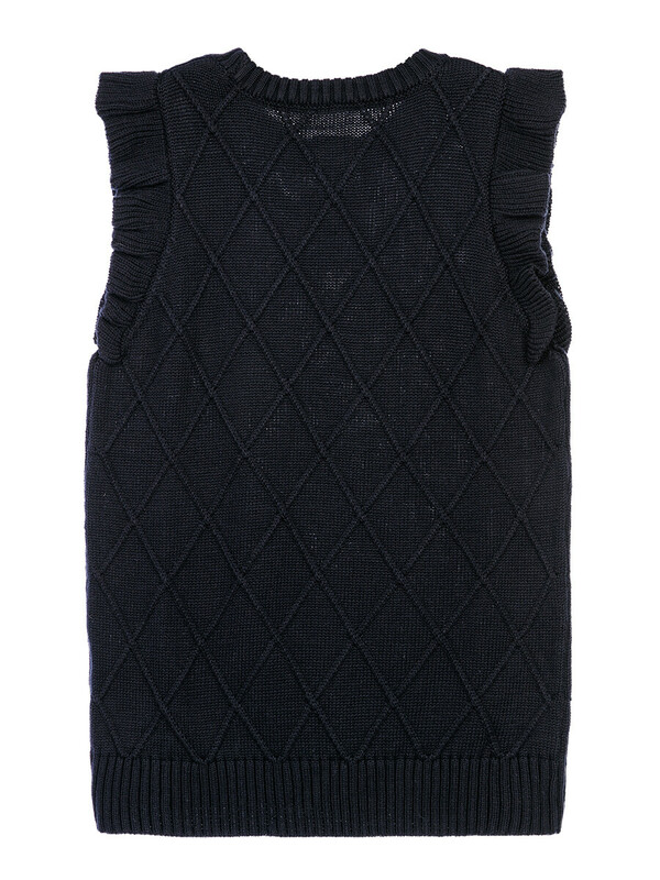 Модный темно-синий вязаный жилет в школу для девочки от PlayToday — гармония уюта, стиля и практичности. Универсальная вещь в гардеробе подростка, которую захочется носить каждый день.