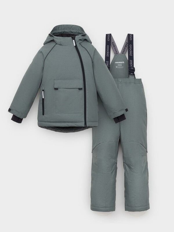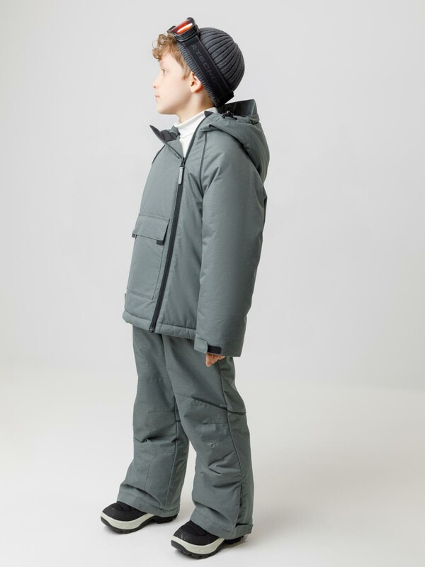 Зимний комплект для мальчика с утеплителем Fellex®. Куртка: 250г/м2. Брюки: 120г/м2. Выполнен из мембранной ткани с дополнительной тефлоновой обработкой, которая предохраняет изделие от загрязнений и отталкивает влагу. Подклад выполнен из 100%полиэстера Tricot. Куртка застёгивается на молнию, предусмотрена защита подбородка. Несъёмный капюшон имеет эластичную утяжку со стопперами. На рукавах внутренние эластичные манжеты, ширина регулируется липучками. Накладной карман с клапаном и один карман на молнии. Эластичный пояс на брюках застёгиваются на молнию и кнопку. Подтяжки регулируются по длине. Анатомический крой в области коленей. Карманы в боковых швах. Низ регулируется под ширину обуви и фиксируется на ноге при помощи липучек. Внутренняя противоснежная юбка и отстёгивающиеся штрипки защищают обувь от попадания снега и удерживают брюки в закреплённом положении. Во всех изделиях верхнего ассортимента для безопасности ребёнка предусмотрены светоотражающие элементы.
